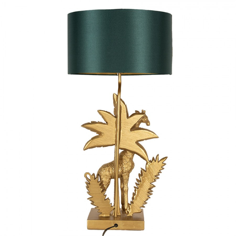 Avec son pied doré représentant une élégante girafe parmi des feuilles tropicales et son abat-jour vert profond, elle attire tous les regards.
