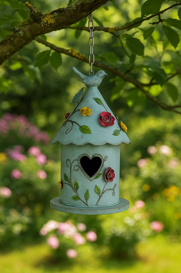 Craquez pour ce nichoir en métal délicatement décoré de fleurs colorées 🌹🌼