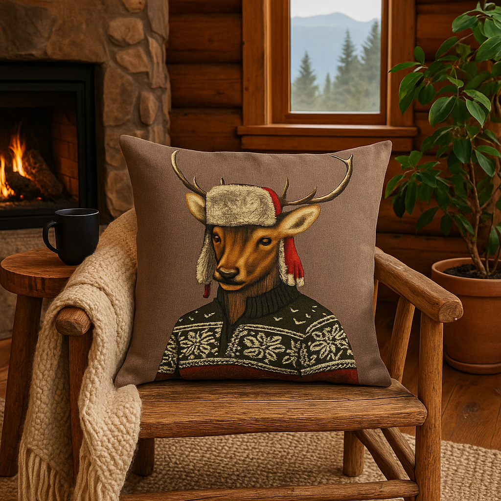 Son motif cerf, vêtu d’un pull nordique et d’une chapka, apporte une touche originale et chaleureuse à votre salon, chalet ou chambre cocooning.