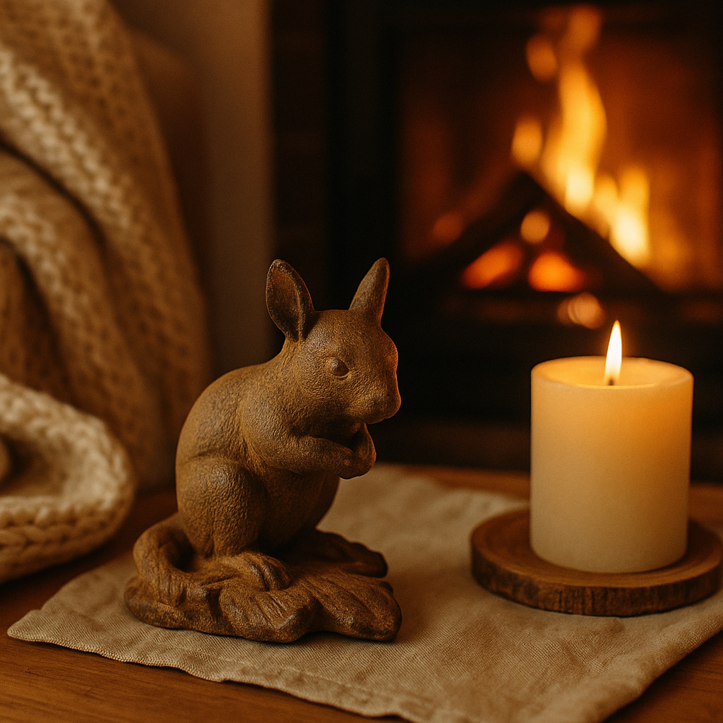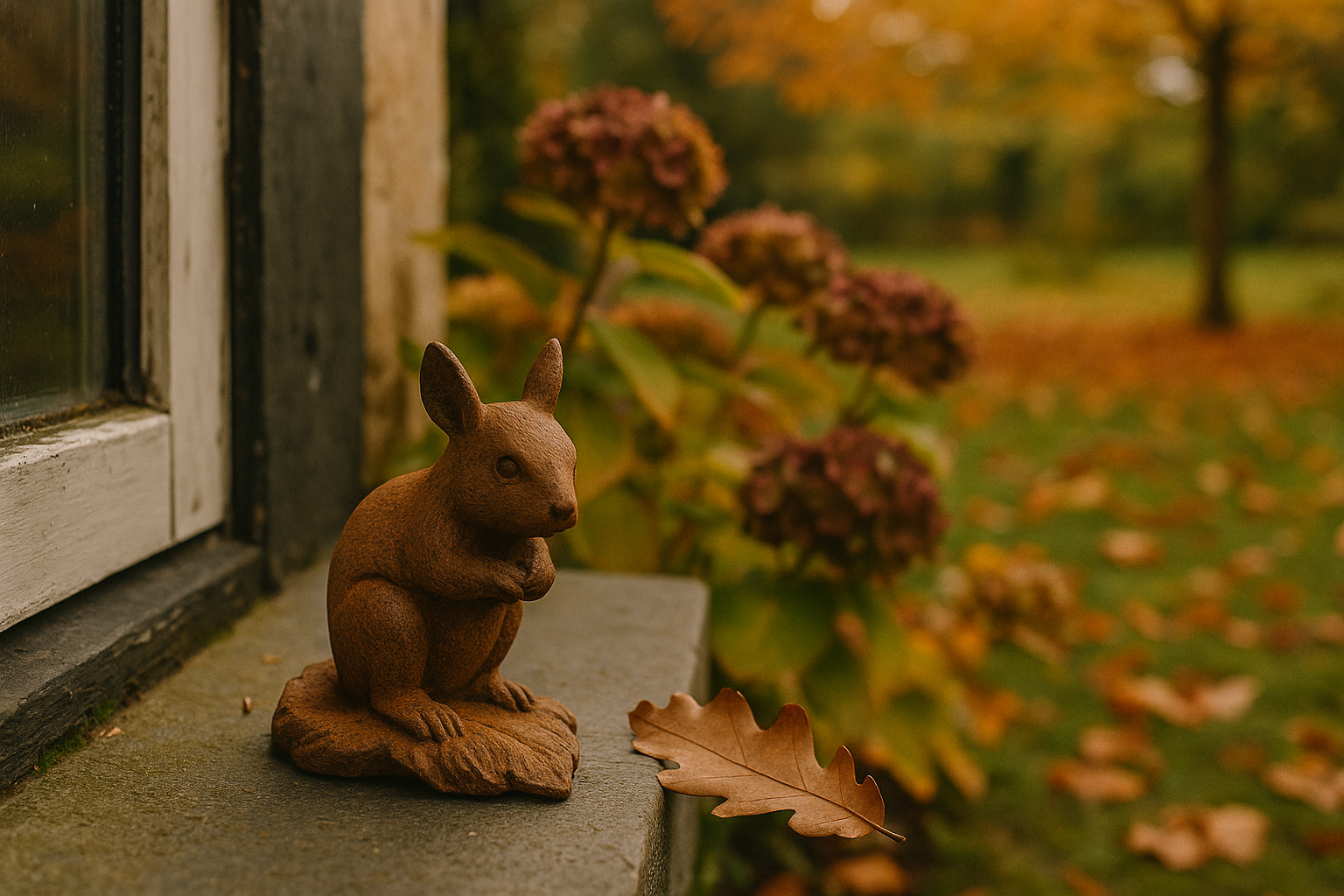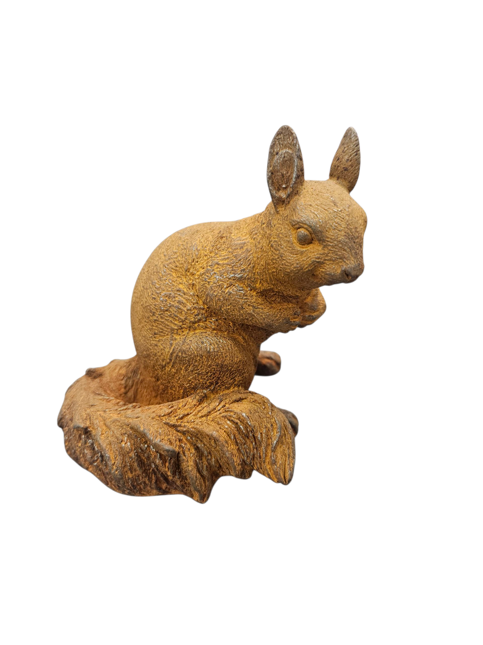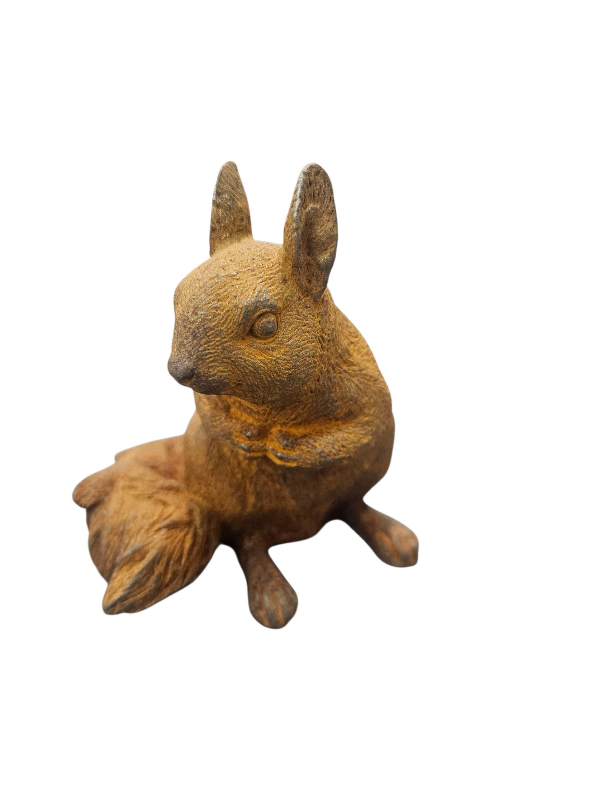 Cet adorable écureuil en fonte rouille, assis sur sa feuille, apportera une touche chaleureuse et intemporelle à votre décoration.