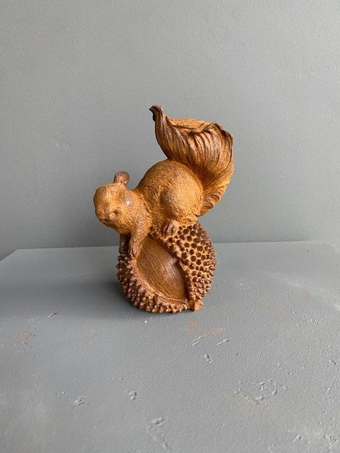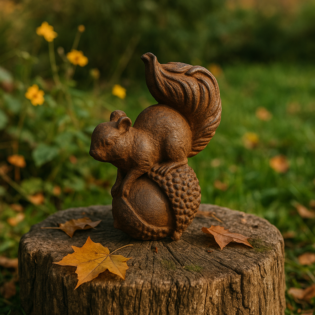 Cet adorable écureuil en fonte rouille semble veiller sur son gland, prêt à apporter à votre maison une touche d’authenticité et de douceur.